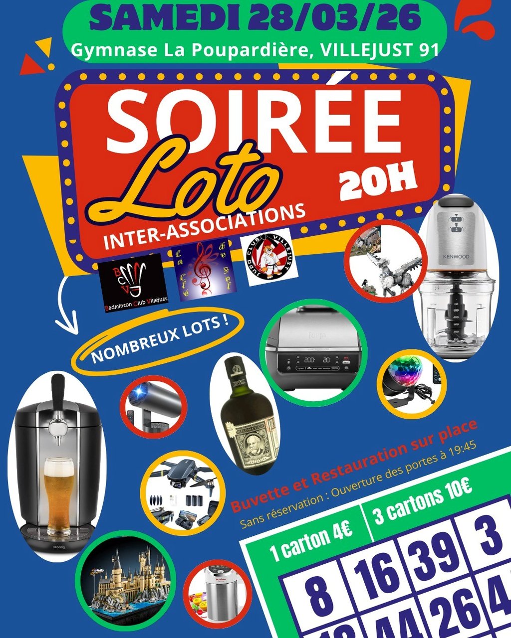 Le Badminton Club de Villejust, La Clé de Sol et le Judo Club vous donnent rendez-vous pour le traditionnel loto inter-associations le samedi 28 mars au Gymnase de la Poupardière.