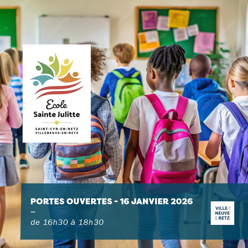 L’équipe de l’école Ste Julitte de St Cyr est heureuse de vous accueillir pour ses portes ouvertes le vendredi 16 janvier 2026, de 16h30 à 18h30.