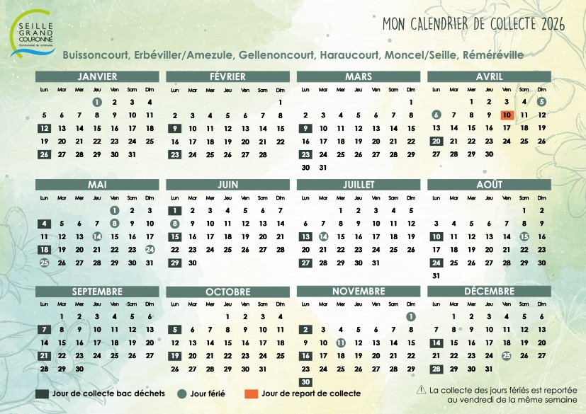 Pour ne rien manquer et organiser facilement vos jours de collecte, vous pouvez télécharger dès maintenant votre calendrier 2026 en ligne.