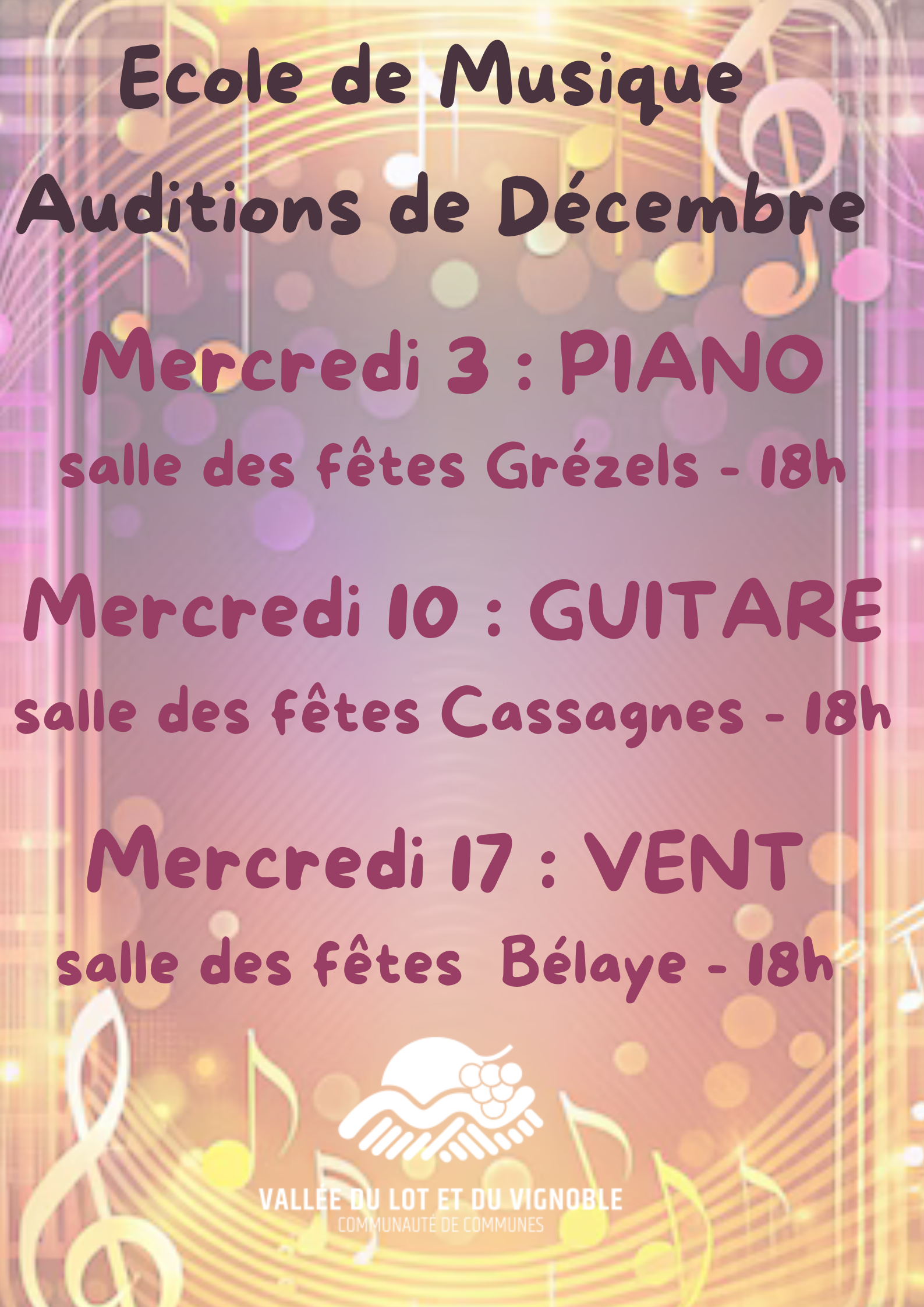 ÉCOLE DE MUSIQUE : LES AUDITIONS DE DÉCEMBRE