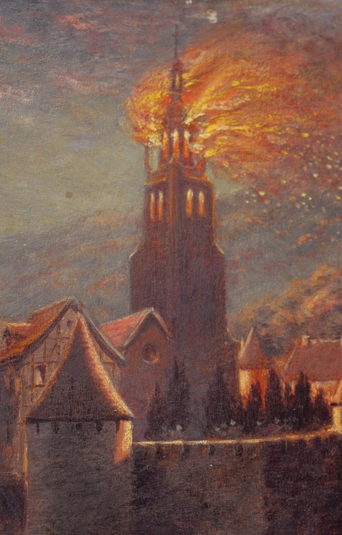 Le clocher, réalisé en pierre calcaire ocre au XVIe siècle, servait de tour de guet dans le système de fortifications de la ville. À l'origine, il atteignait 75 mètres de haut. En 1651, un feu d'artifice tiré depuis le sommet l'incendia. à sa restauration, il fut diminué de 19 mètres. La touer s'élève sur cinq étages. Elle est étayée de contreforts sauf en un angle, où siège une tourelle-escalier d'abord insérée dans l'épaisseur du mur de la tour, puis saillante. Cette tourelle, de 209 marches, débouche sur une galerie fermée par une balustrade métallique. l'ensemble est couronné d'un dôme aplati à huit pans surmonté d'un lanternon octogonal.