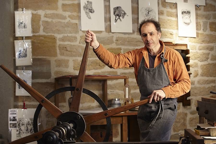 Elle devient en 2013 un atelier d’artiste "La Pierre qui Encre". Patrice Gouttefanjat, vous ouvre ses portes au quotidien et vous fait découvrir la technique lithographique avec des démonstrations d’impression d’estampes sur une presse ancienne de 1860. Autodidacte passionné et passionnant, son amour pour le dessin et la technique lithographique s’exprime à travers ses créations.