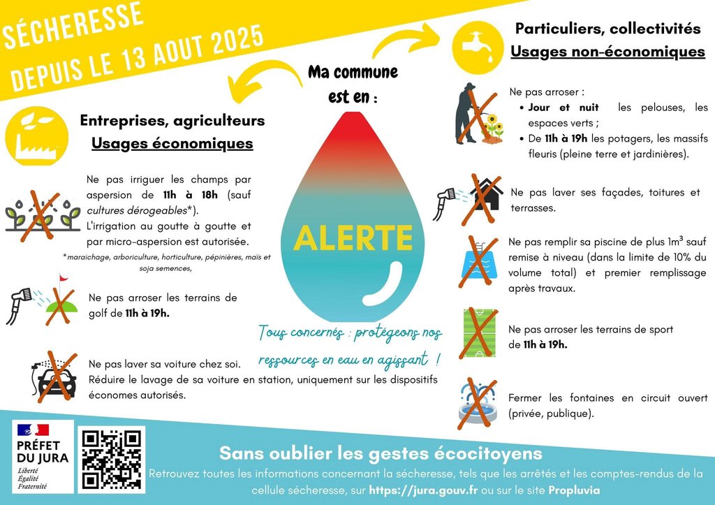 🚨 Sécheresse dans le Jura : restrictions renforcées 💧