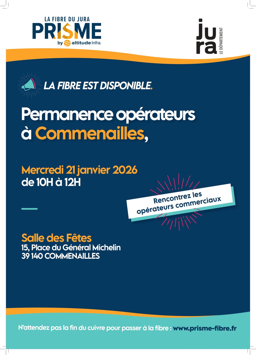 Afin de vous accompagner dans vos démarches, une permanence est organisée le mercredi 21 janvier 2026 de 10h00 à 12h00 à la salle des fêtes de Commenailles.