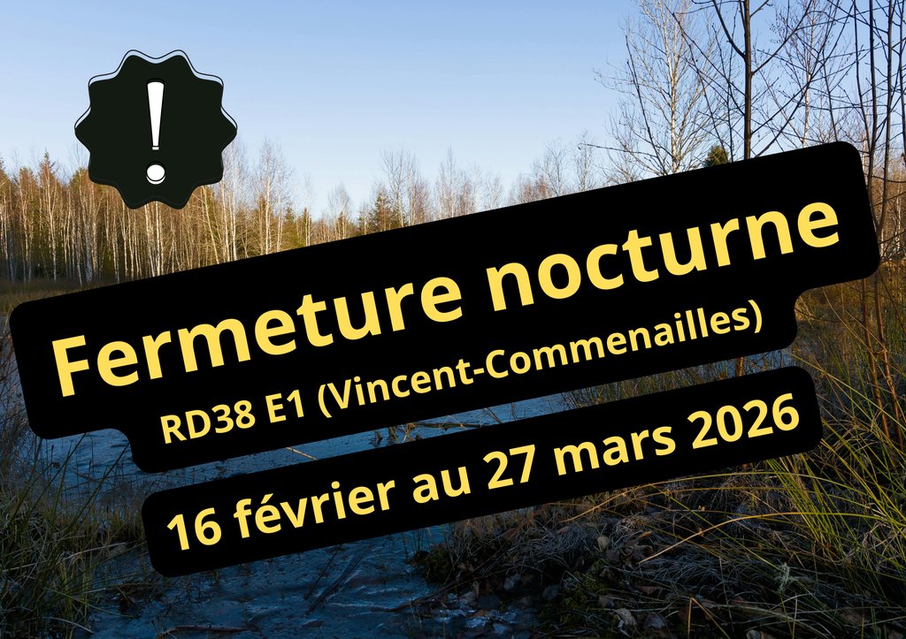 INFORMATION IMPORTANTE - RD38E1 BARRÉE DU 16 FÉVRIER AU 27 MARS 2026 (SOIRÉE ET NUIT)