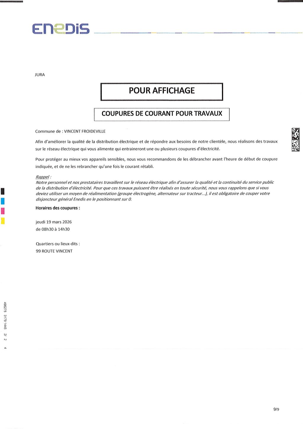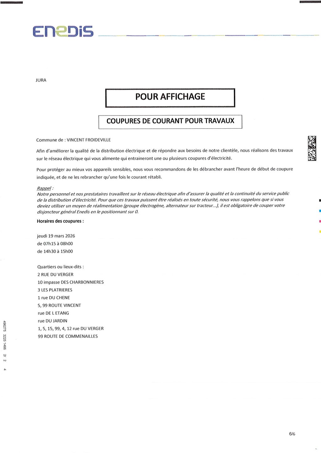 COUPURES DE COURANT POUR TRAVAUX - 19 MARS 2026