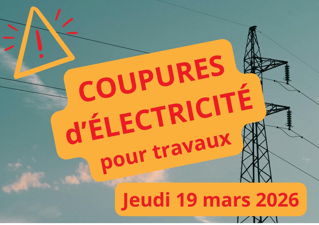 Afin de réaliser des travaux sur le réseau électrique, des coupures de courant sont programmées le jeudi 19 mars 2026.