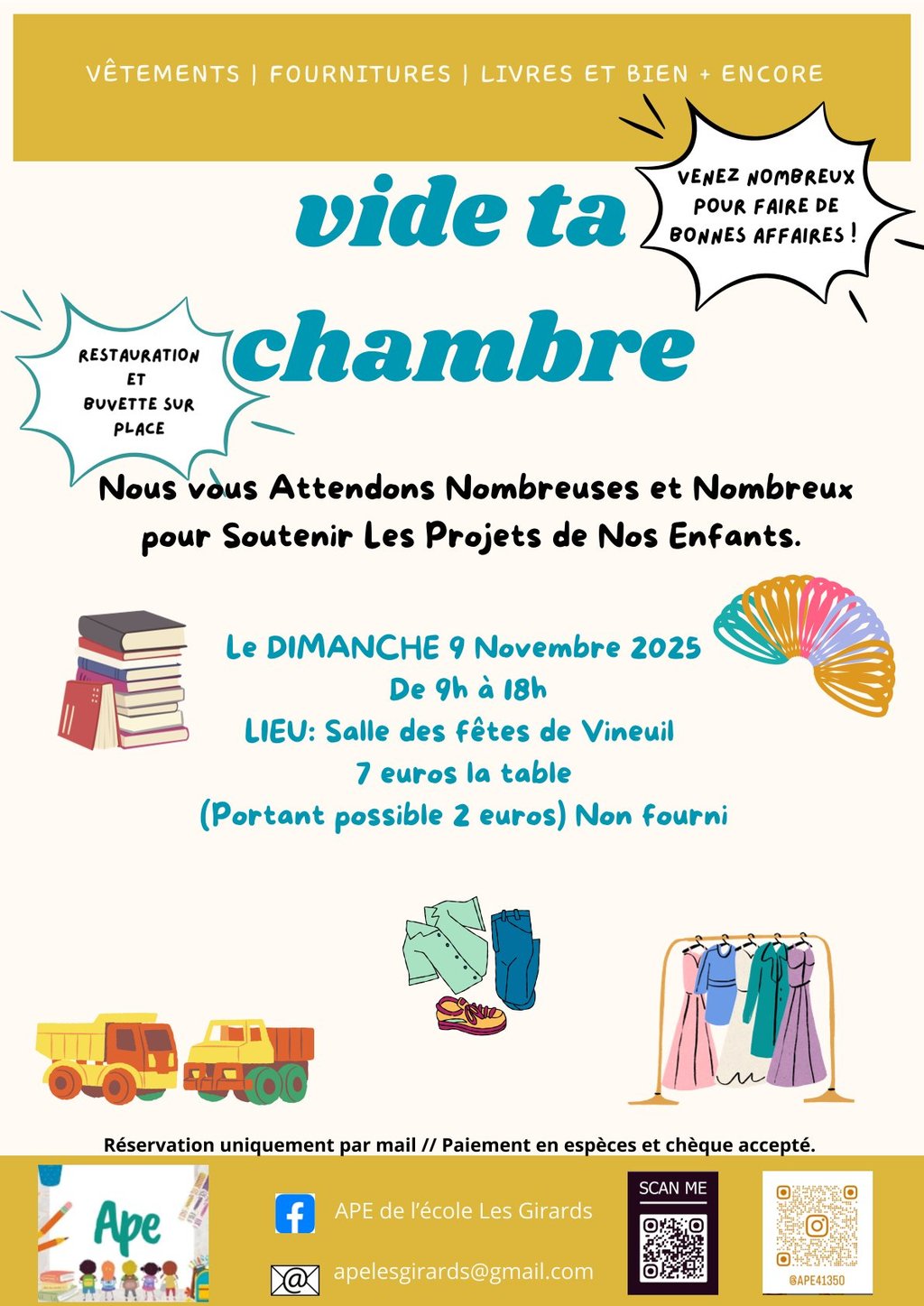 🎉 VIDE TA CHAMBRE – Le 9 novembre 2025 à la salle des fêtes de Vineuil 🎉