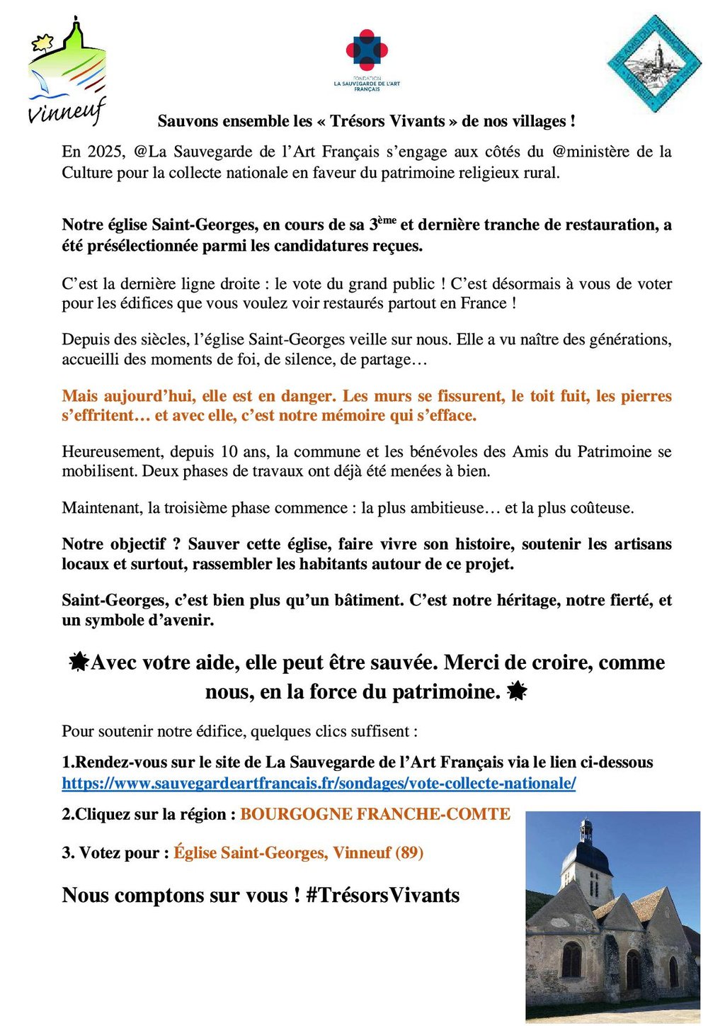 VINNEUF : SAUVONS NOTRE PATRIMOINE - VOTEZ POUR NOUS !