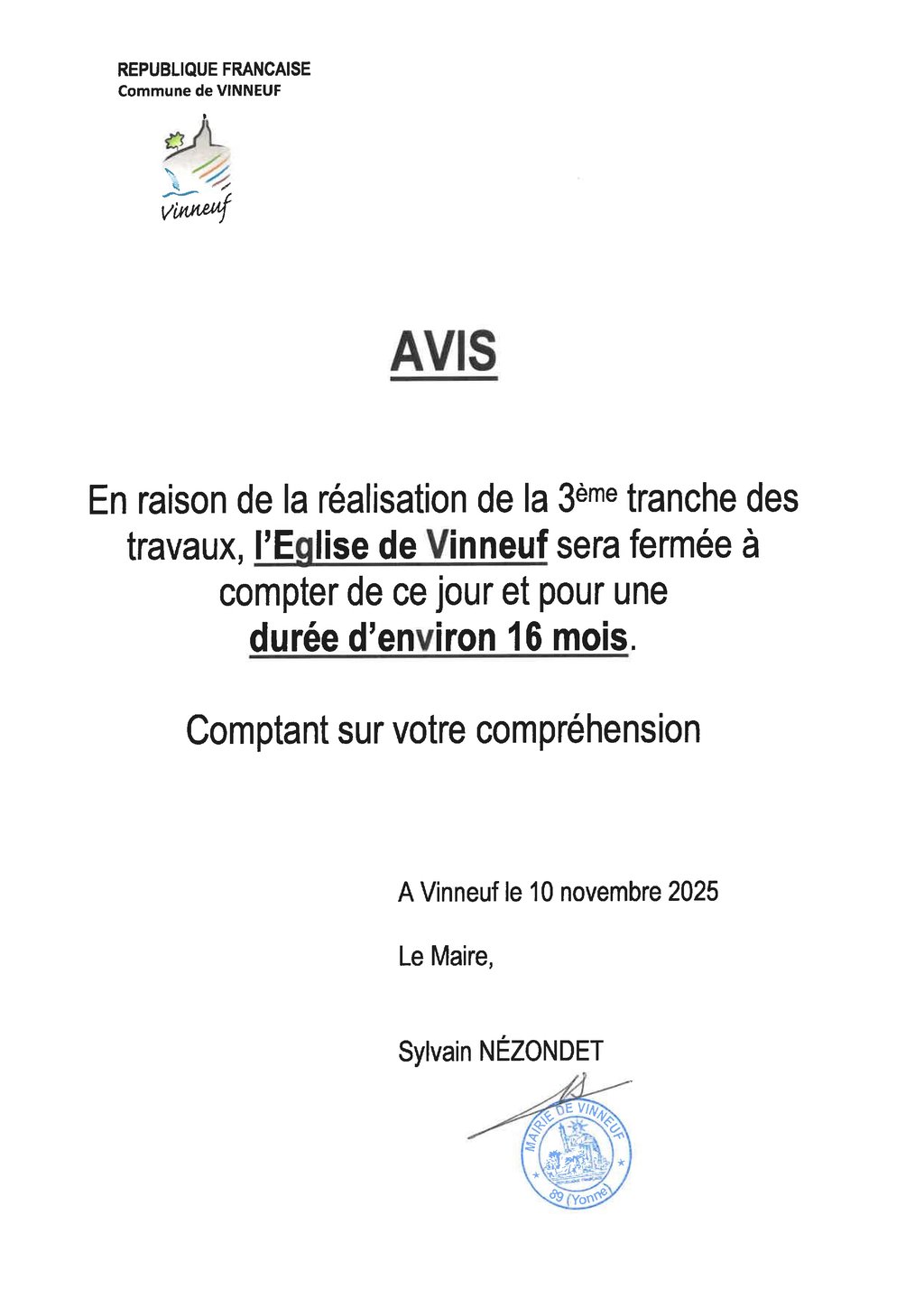 Avis fermeture de l'église
