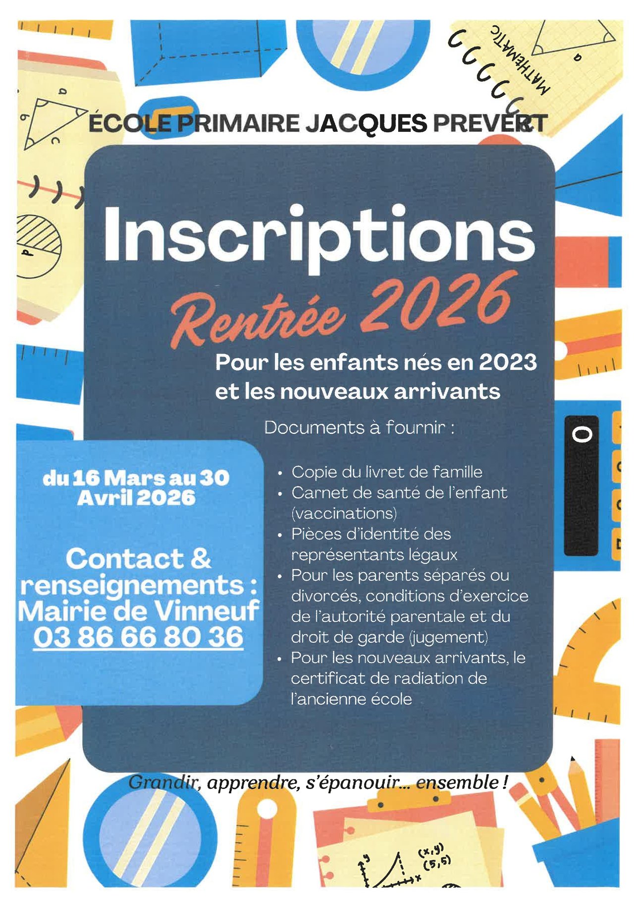 INSCRIPTION RENTRÉE SCOLAIRE 2026