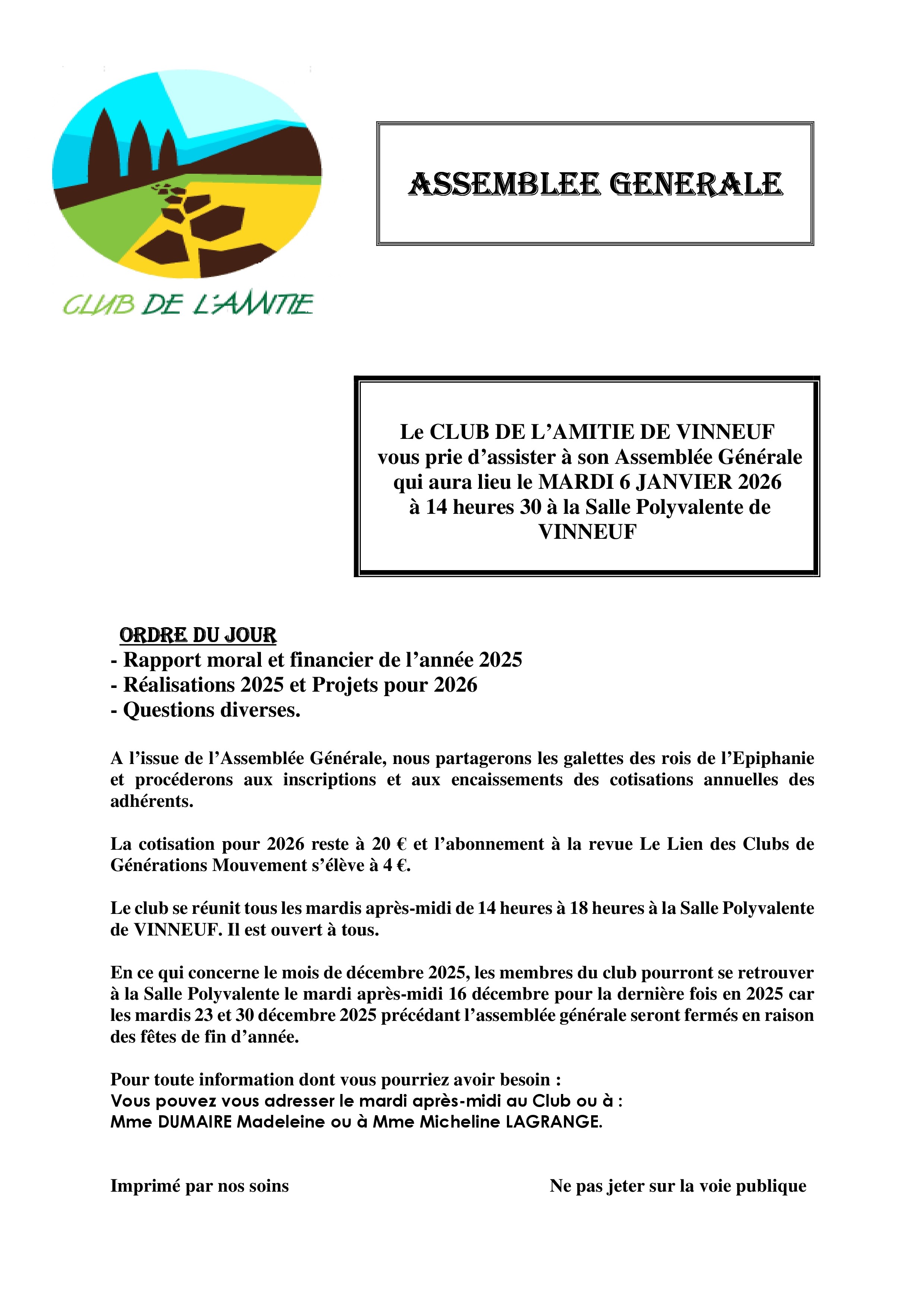 ASSEMBLÉE GÉNÉRALE DU CLUB DE L'AMITIÉ
