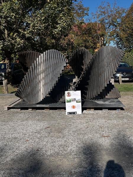 Réalisée dans le cadre du Symposium International de Sculpture de Campagn'art, cette oeuvre s'invite au coeur du village pour rendre l'art contemporain accessible à tous.