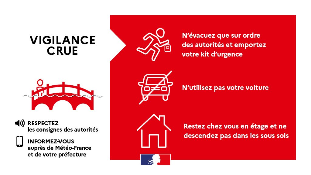 - Ne vous engagez en aucun cas, à pied ou en voiture, sur une voie immergée ou à proximité d'un cours d'eau ainsi qu'en forêt