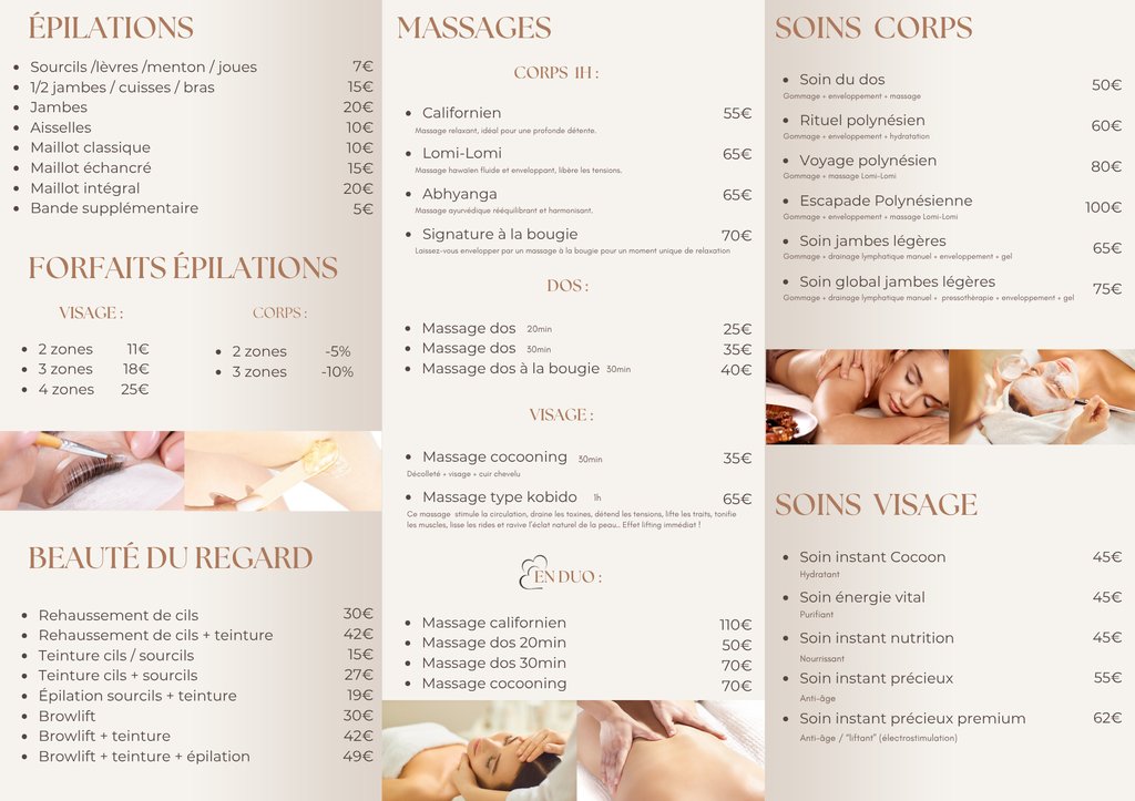 Que ce soit pour une manucure, une épilation, un soin du visage, un massage, un maquillage ou d’autres prestations, je mets tout en œuvre pour vous offrir un moment de détente et de relaxation 🧖🏼♀️