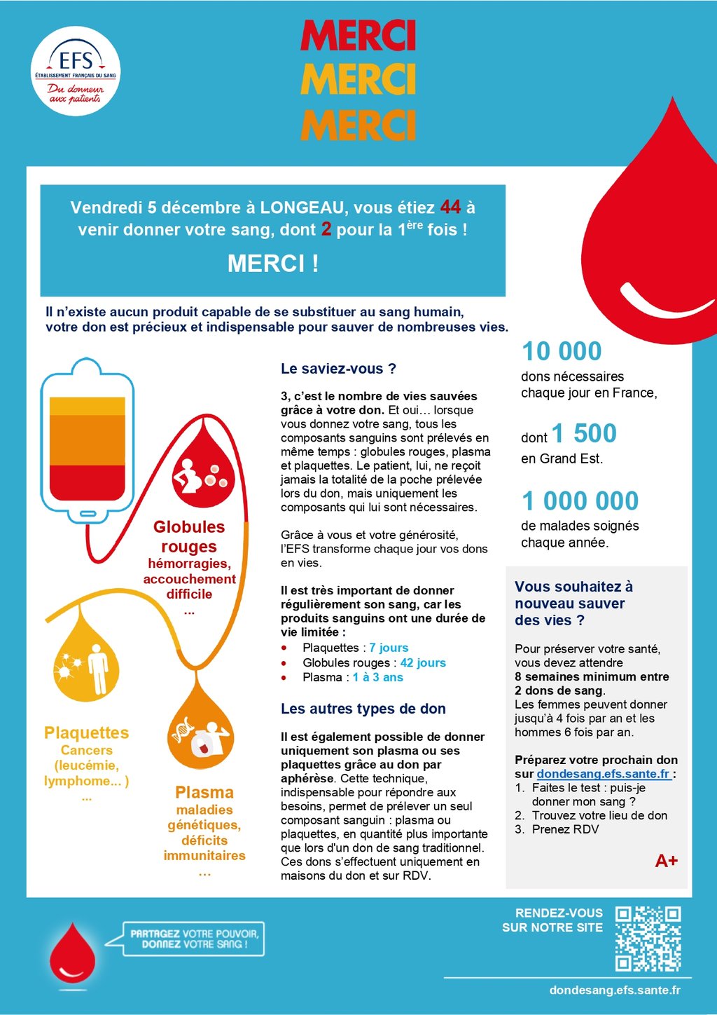 Un immense merci à toutes les personnes qui ont participé au don du sang de Longeau le 05 décembre 2025.