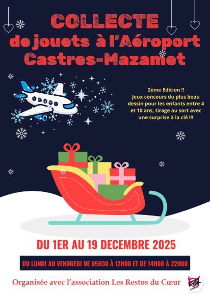 L'aéroport de Castres-Mazamet et les Restos du Cœur vous accueille pour une collecte de jouets.