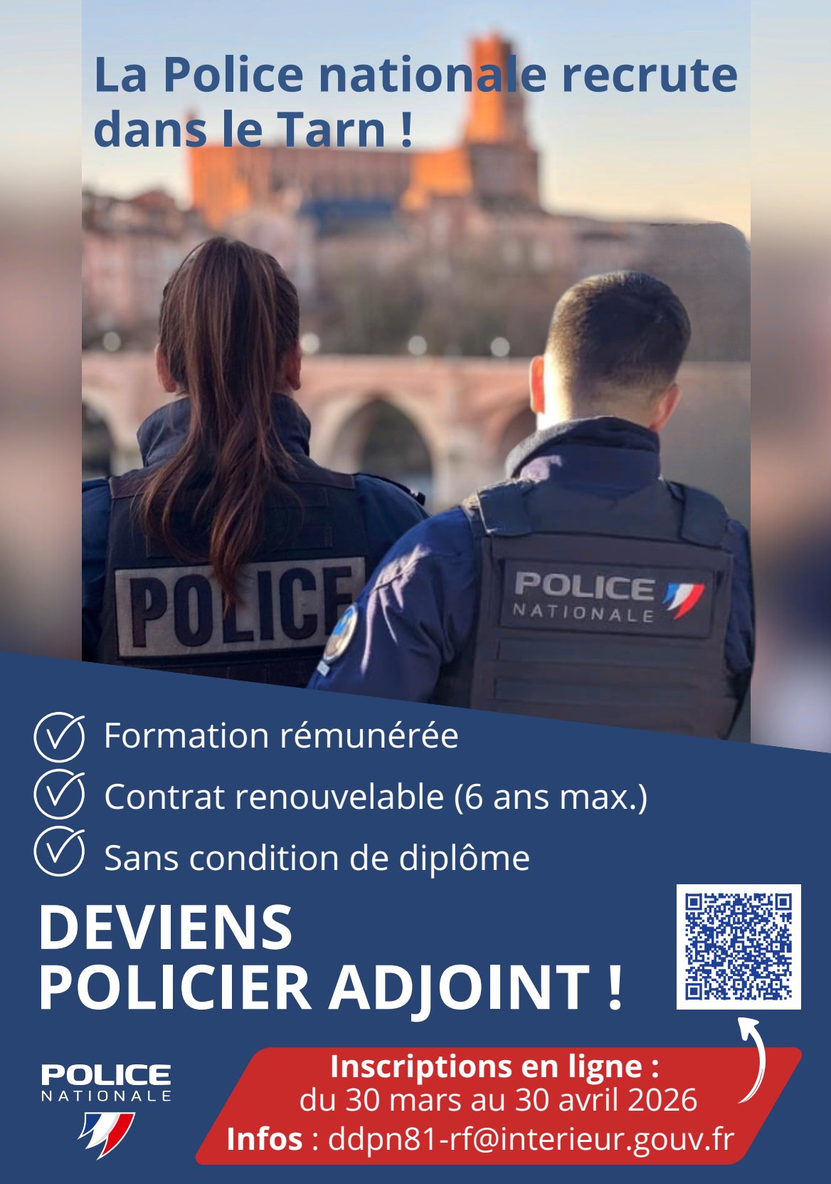 LA POLICE NATIONALE RECRUTE DES POLICIERS ADJOINTS DANS LE TARN.