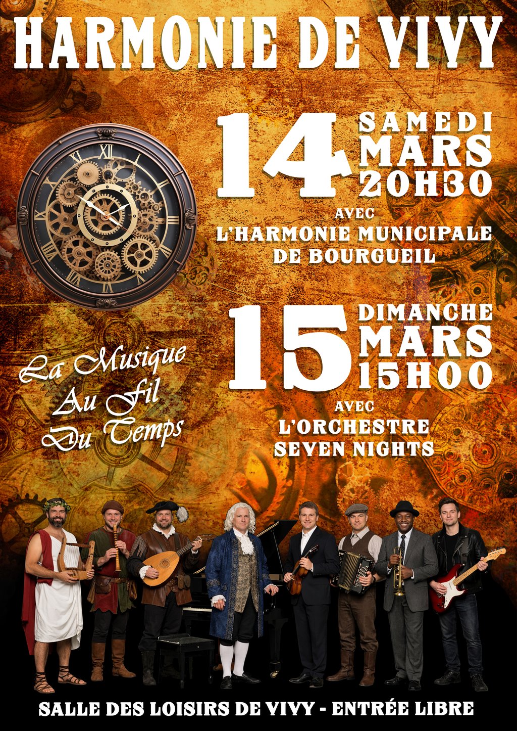 L’Harmonie de Vivy a le plaisir de vous inviter à son concert de printemps le samedi 14 mars à 20h30 et le dimanche 15 mars à 15h à la salle des loisirs de Vivy 🎼