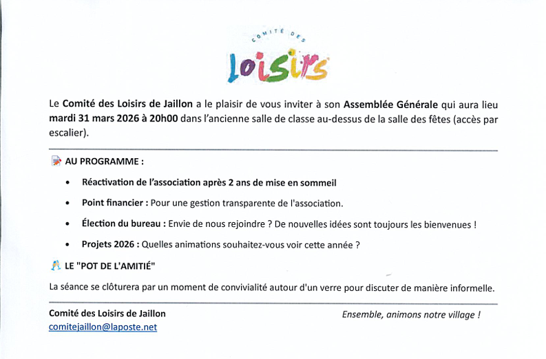 ASSEMBLEE GENERALE COMITE DES LOISIRS