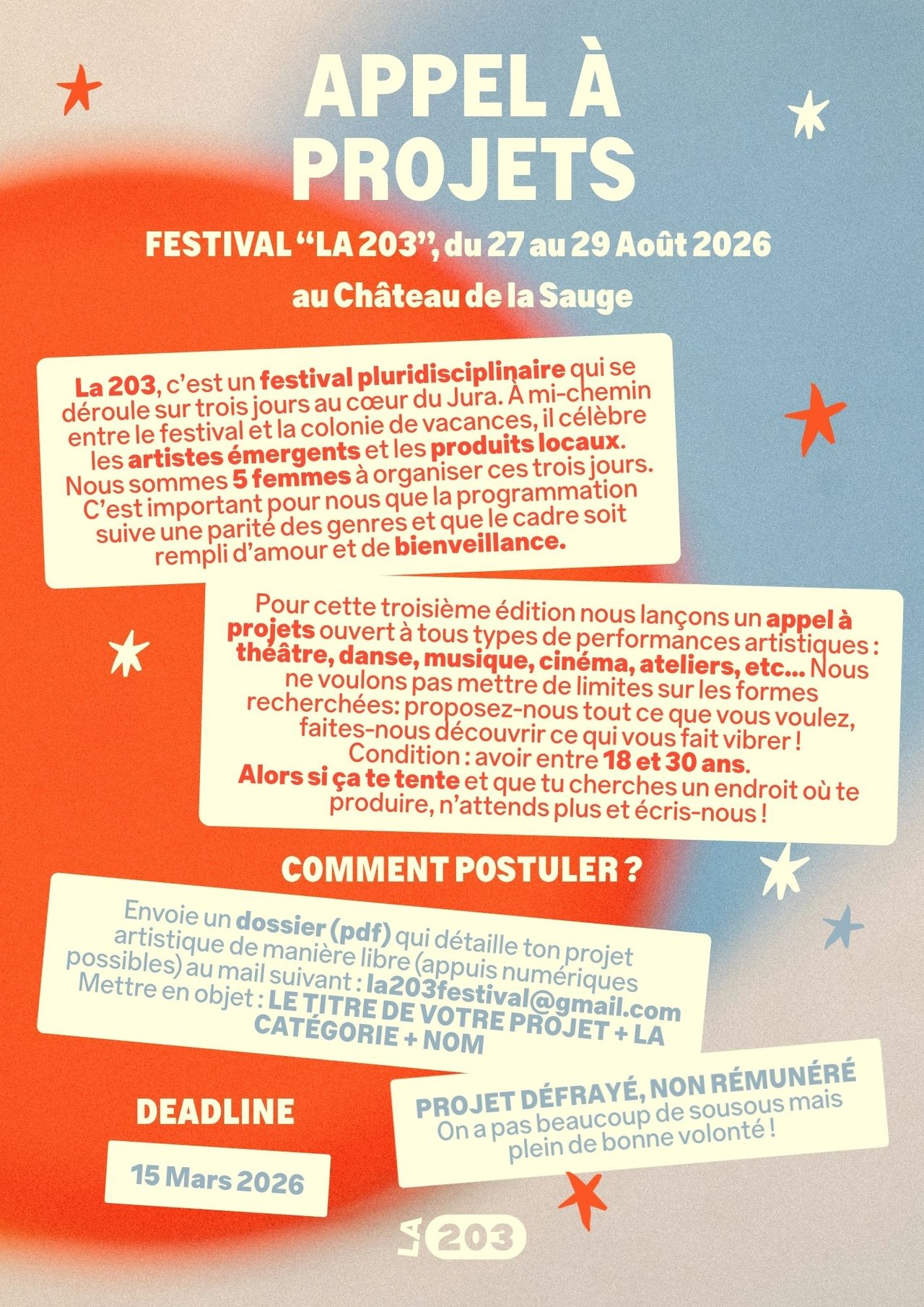 APPEL À PROJETS - FESTIVAL LA 203