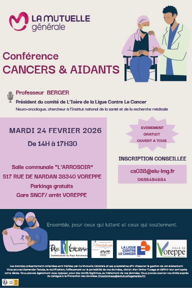 Conférence cancers et aidants gratuite et ouverte à tous par le professeur Berger, président du comité de L'Isère de la Ligue contre le Cancer
