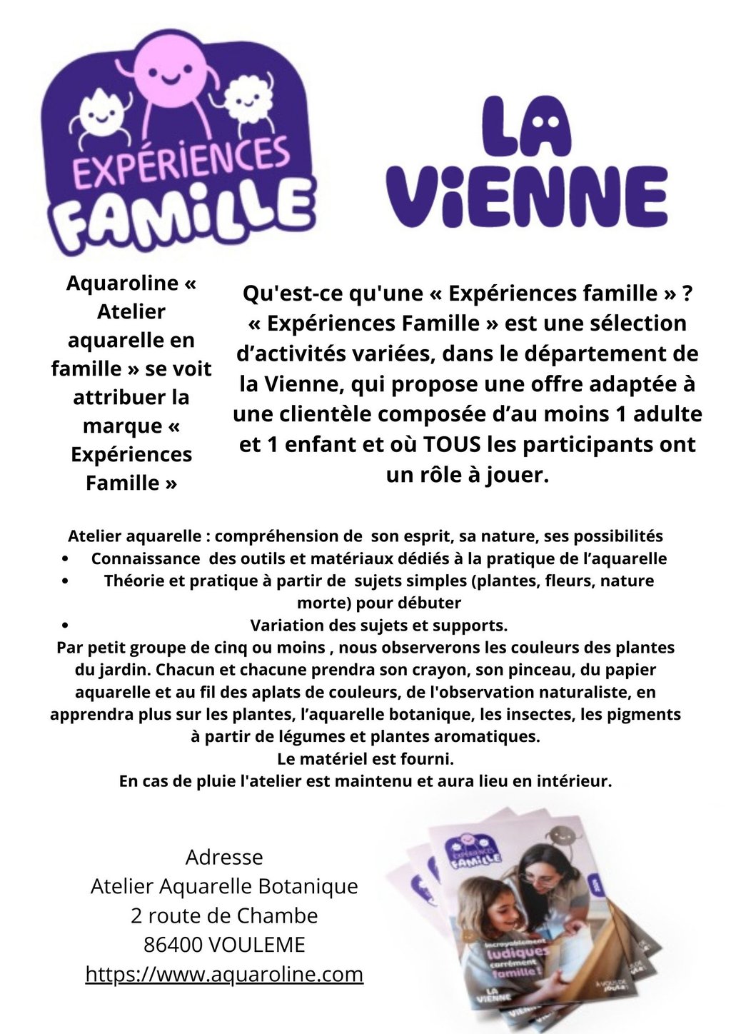 AQUAROLINE a été de nouveau labellisé pour son atelier "Aquarelle botanique" par l'Agence départementale du tourisme de la Vienne.