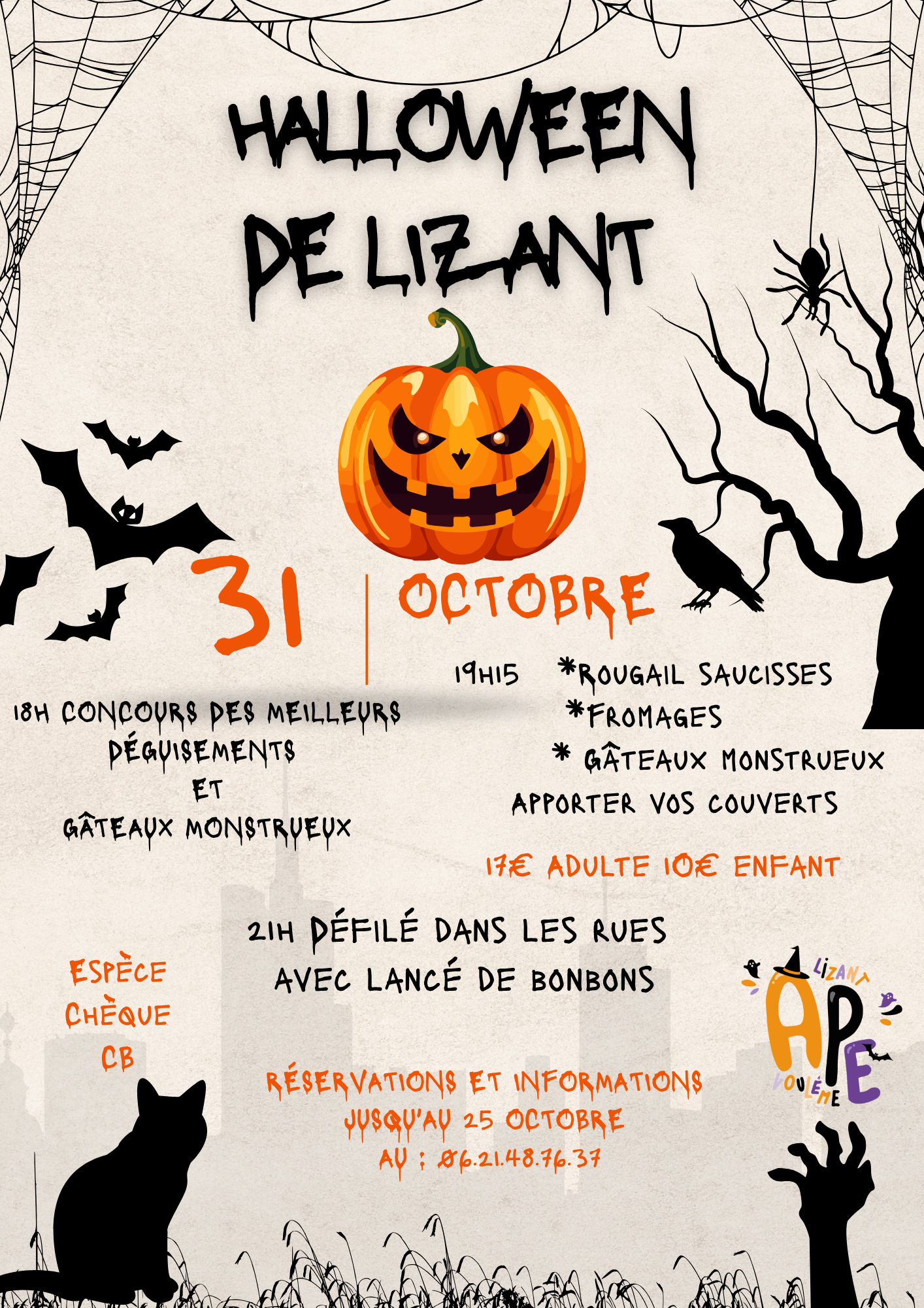 L'Association des Parents d'Elèves de Voulême et Lizant organise la fête d'Halloween le 31 octobre à Lizant.