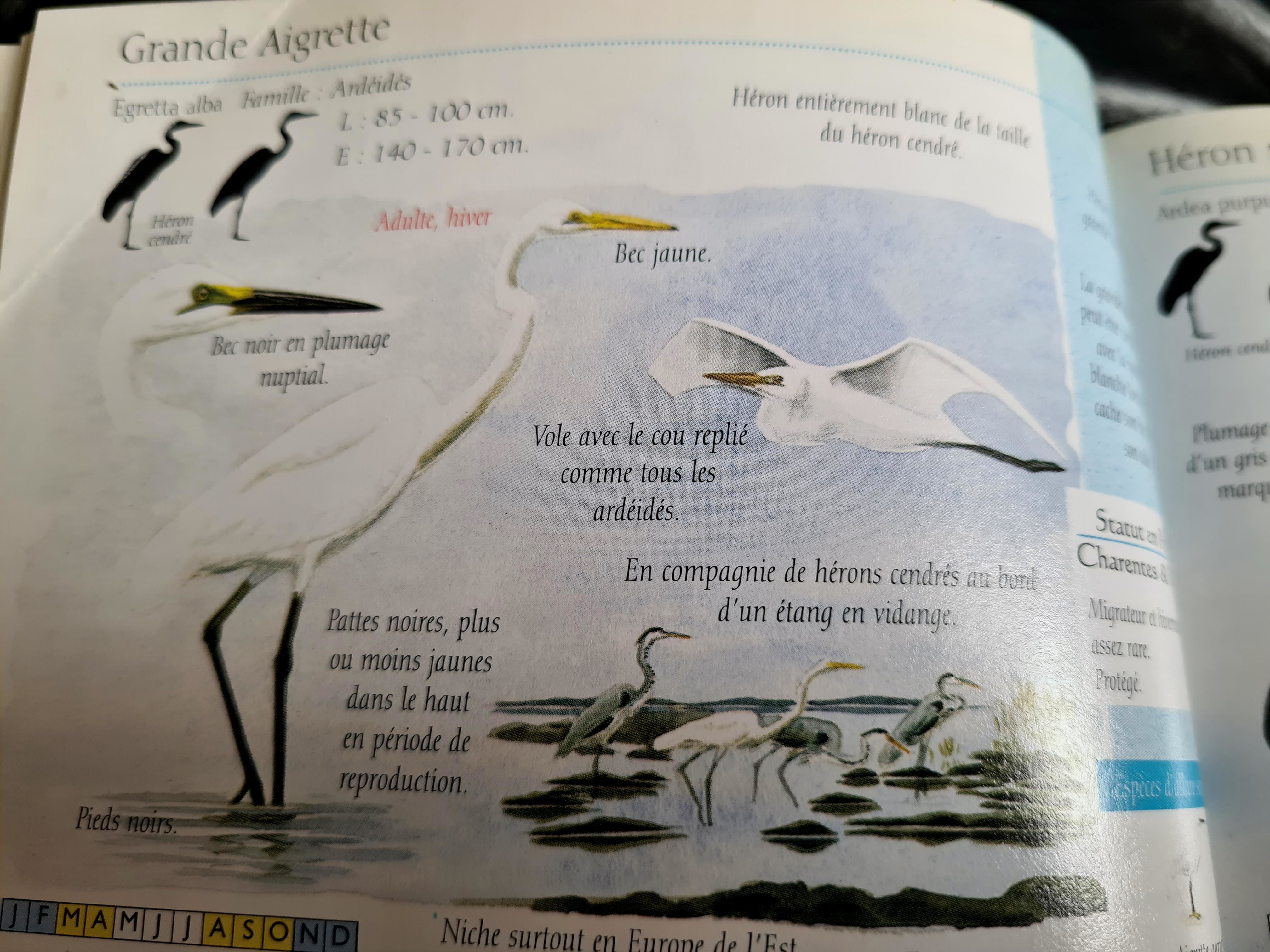 Grandes aigrettes à bec jaune, au plumage immaculé, stationnées sur le chemin de leur migration dans la prairie entre la D106 et la Charente, vite envolées.