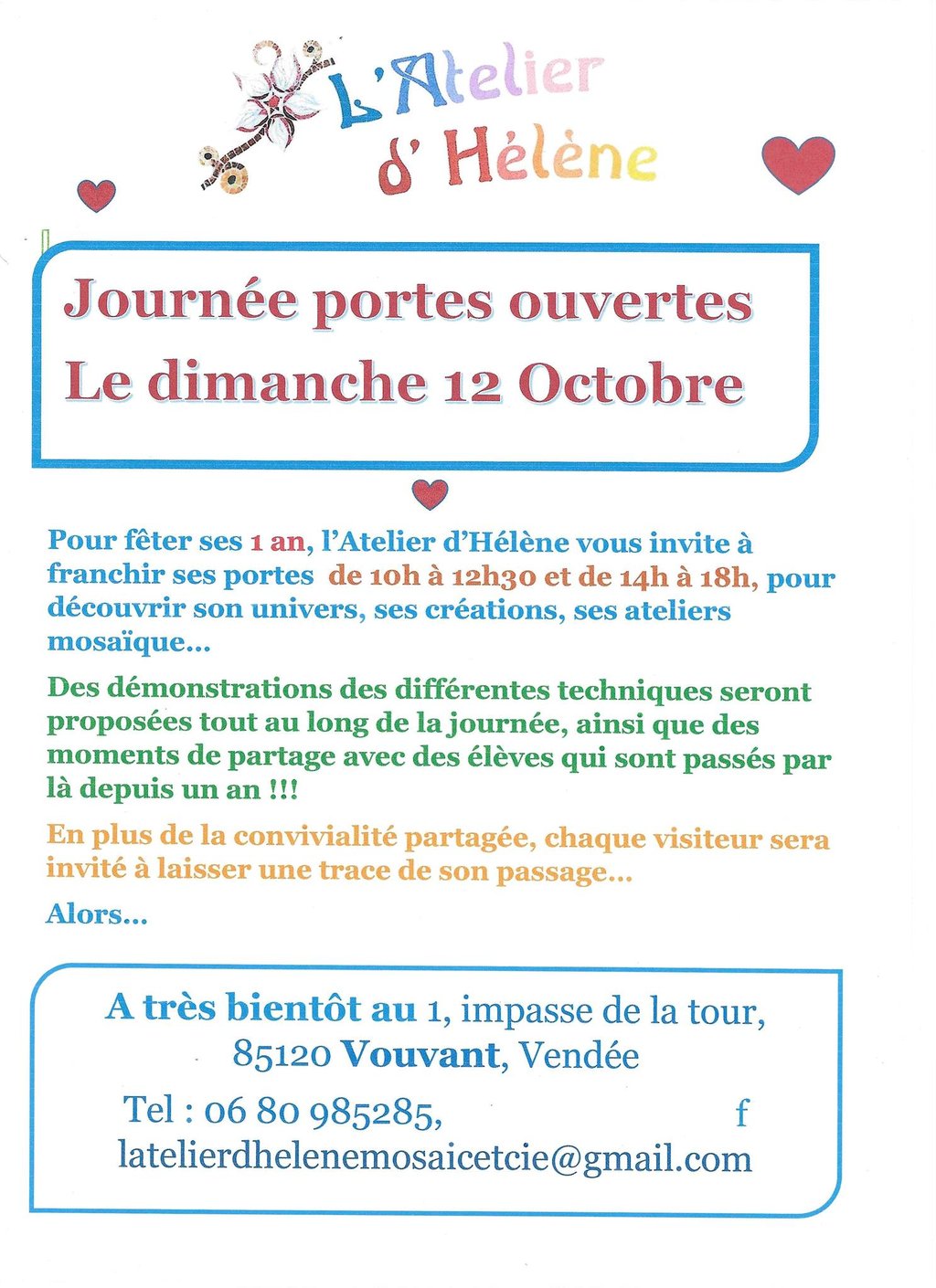 Journée portes ouvertes le dimanche 12 octobre - L'Atelier d'Hélène