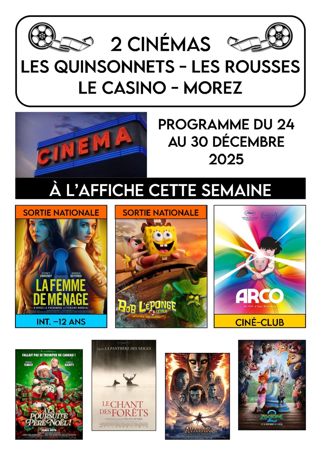Programme Cinéma Morez/Les Rousses du 24 au 30 décembre 2025