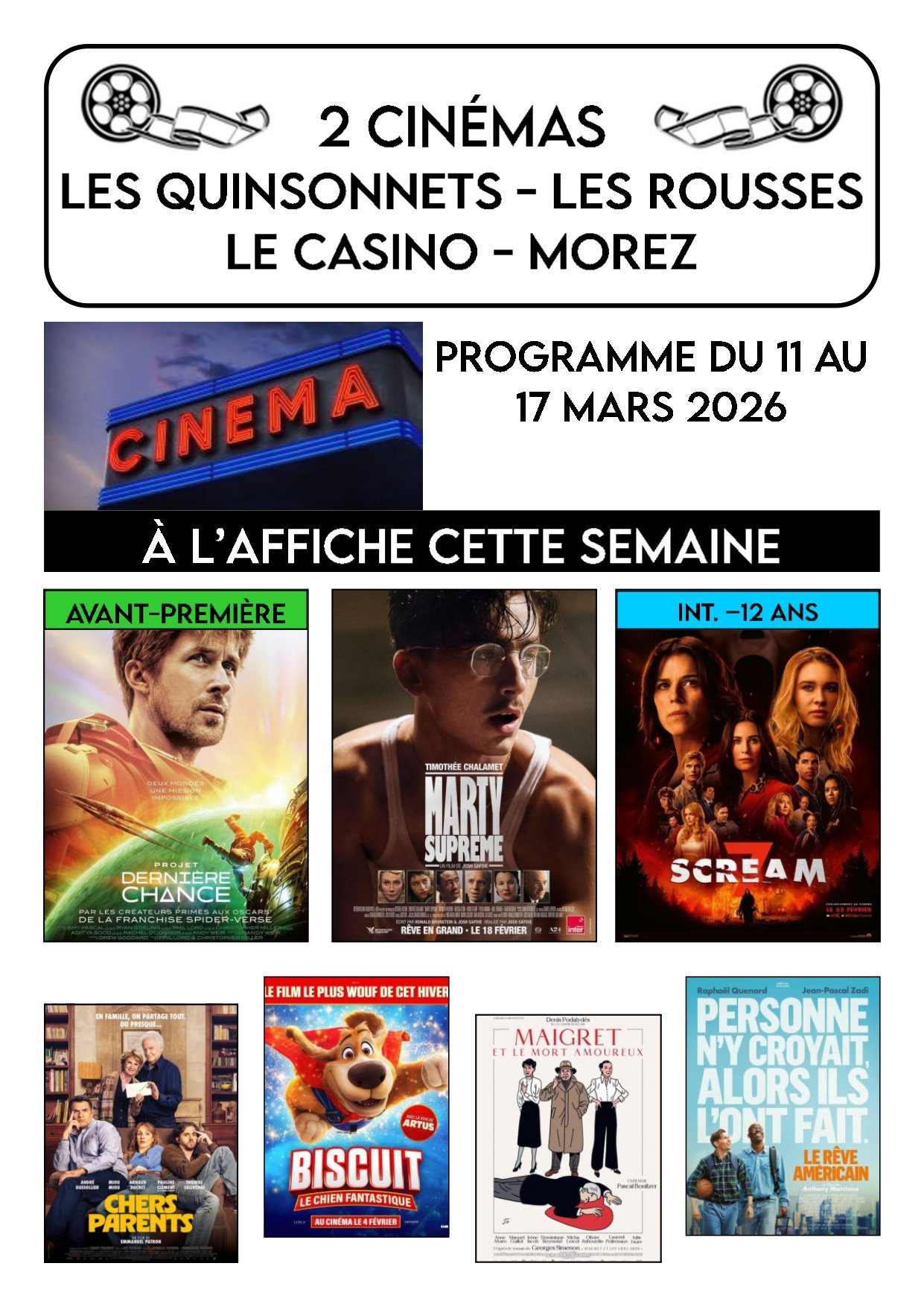 Programme Cinéma Morez/Les Rousses du 11 au 17 mars 2026