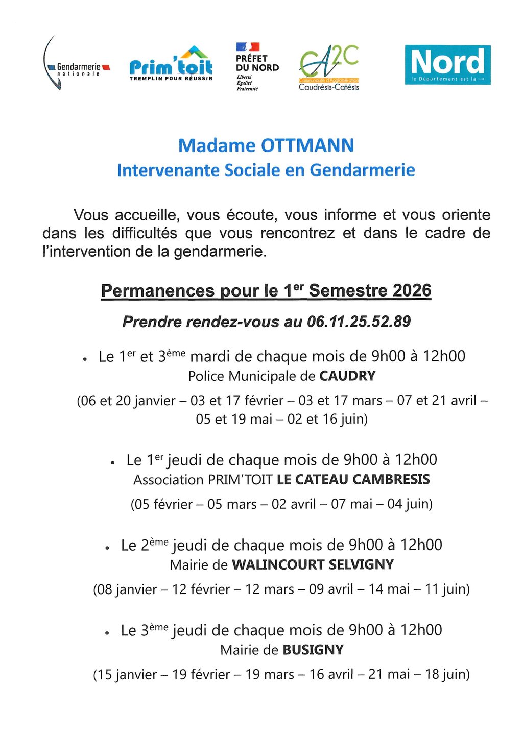 Madame OTTMANN, vous accueille, vous écoute, vous informe et vous oriente dans les difficultés que vous rencontrez et dans le cadre de l'intervention de la gendarmerie