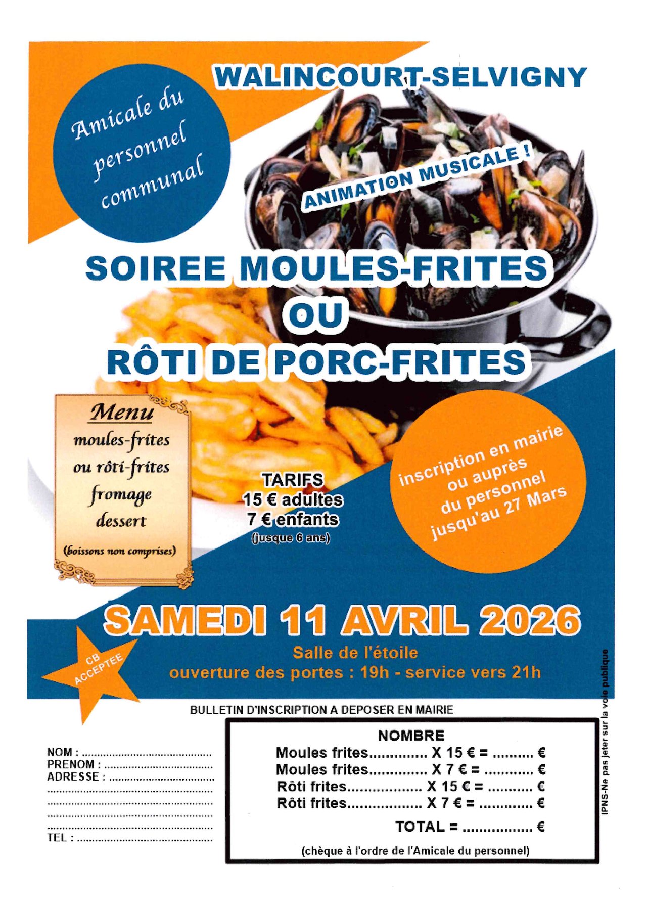 l'Amicale du personnel communal organise une soirée Moules-Frites