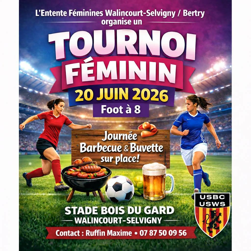 L’Entente Féminine Walincourt-Selvigny / Bertry est fière de vous donner rendez-vous le 20 juin 2026 pour son grand tournoi féminin (Foot à 8 )
