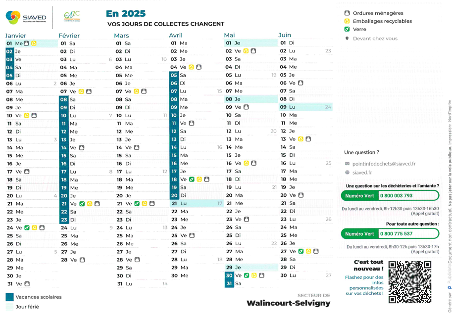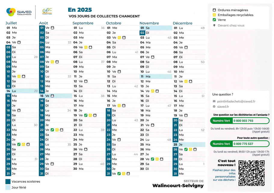 Vous pouvez consulter ci-dessous le calendrier de collecte 2025 :