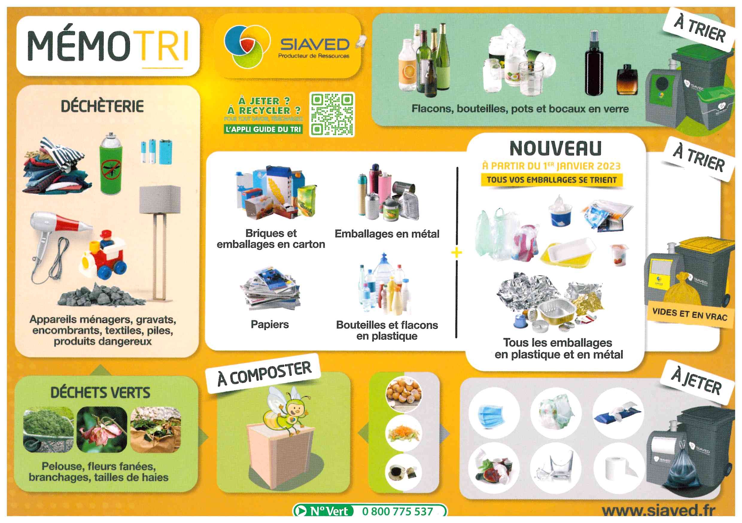Le tri sélectif étant obligatoire sur le territoire communautaire, le SIAVED transmet annuellement le calendrier de ramassage des différents containers.