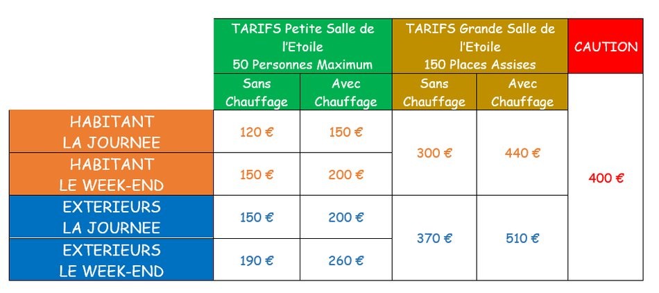 TARIFS DE LOCATIONS DES SALLES SES FÊTES :