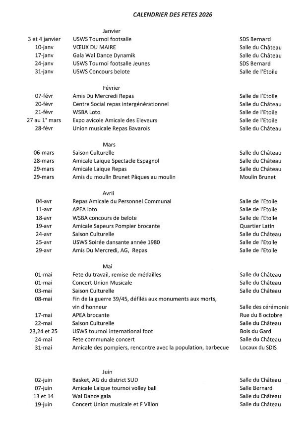 CALENDRIER DES FÊTES 2026 :