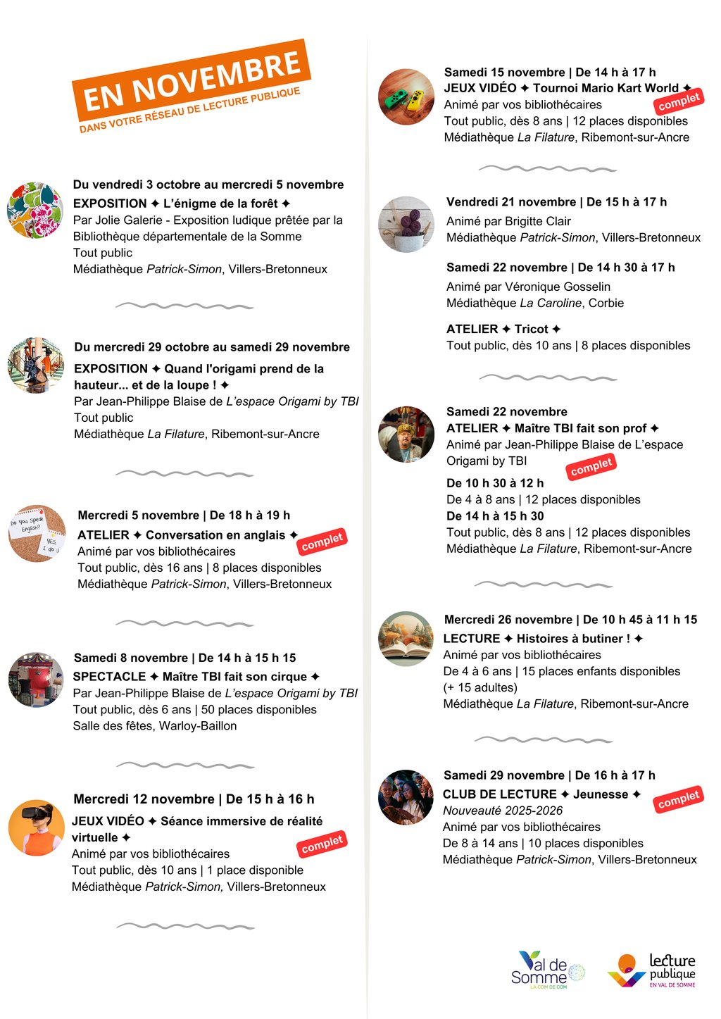 LES ANIMATIONS DU MOIS DE NOVEMBRE 2025 À RETROUVER DANS VOS MÉDIATHÈQUES INTERCOMMUNALES