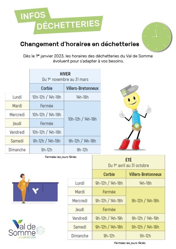 INFOS DECHETTERIES - CHANGEMENT D'HORAIRES