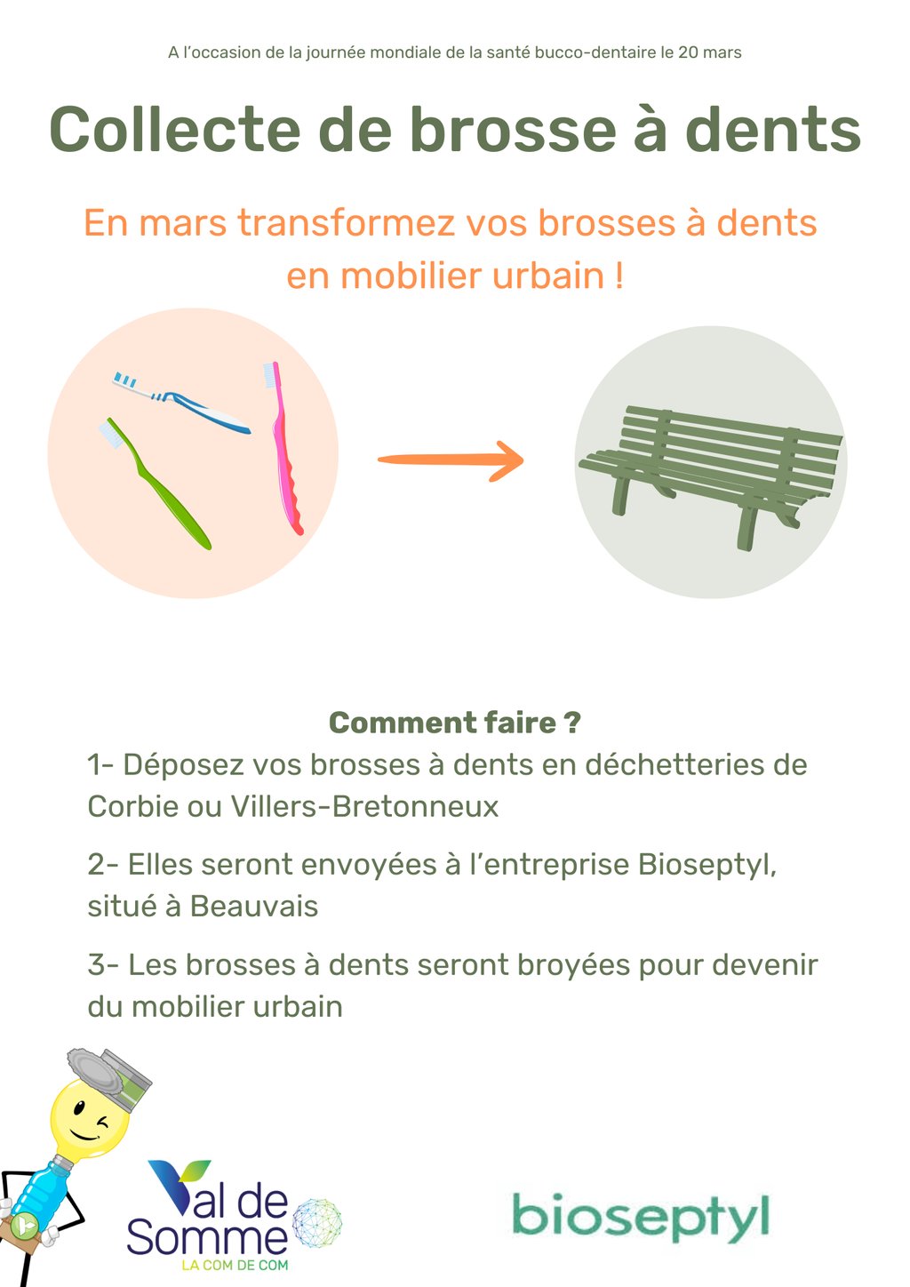1- Déposez vos brosses à dents en déchetteries de Corbie ou Villers-Bretonneux
