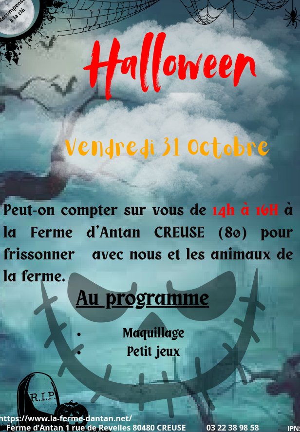 HALLOWEEN – Le vendredi 31 octobre après-midi, les enfants sont invités à venir frissonner à la ferme...