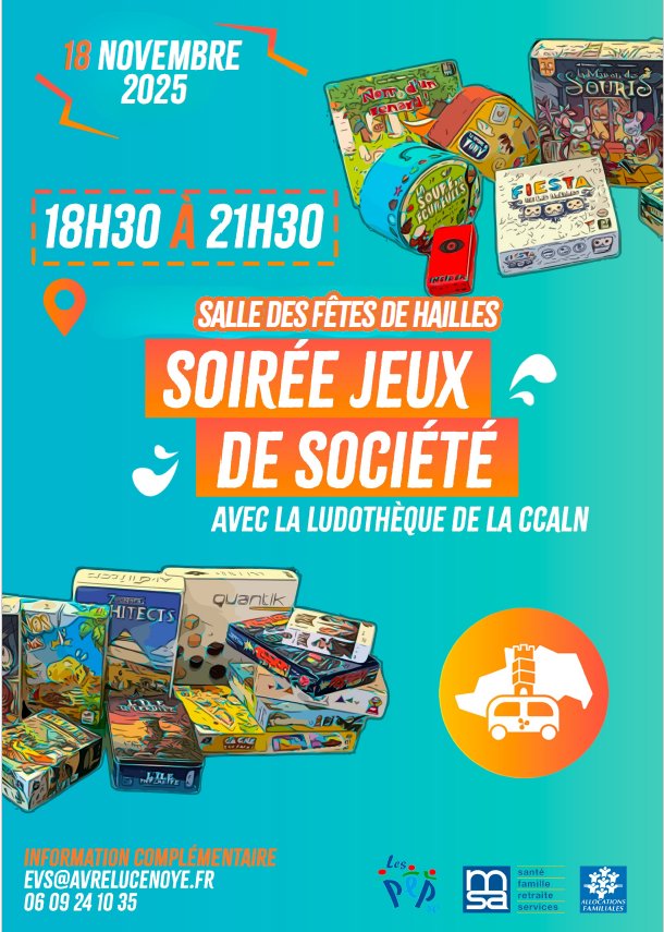 Partageons un moment convivial et amusant le mardi 18 novembre 2025 de 18h30 à 21h30 à la salle des fêtes de Hailles.
