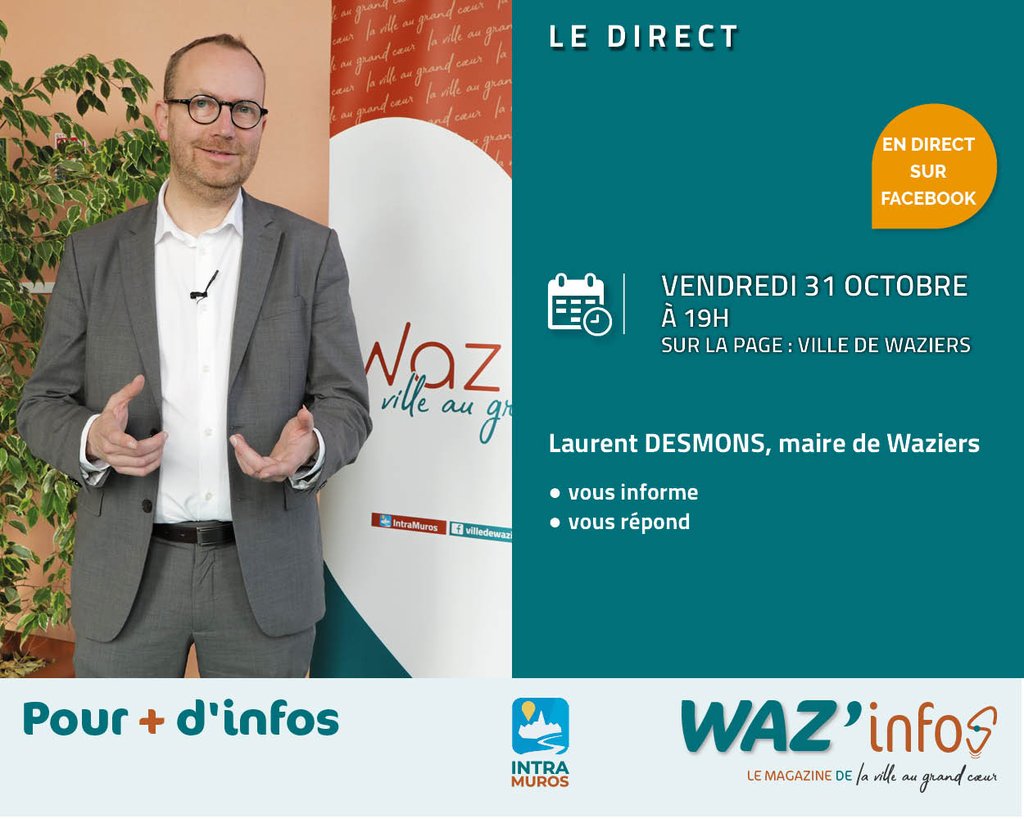 Laurent Desmons, Maire de Waziers vous informe et répond à vos questions en direct sur la page Facebook Ville de Waziers.