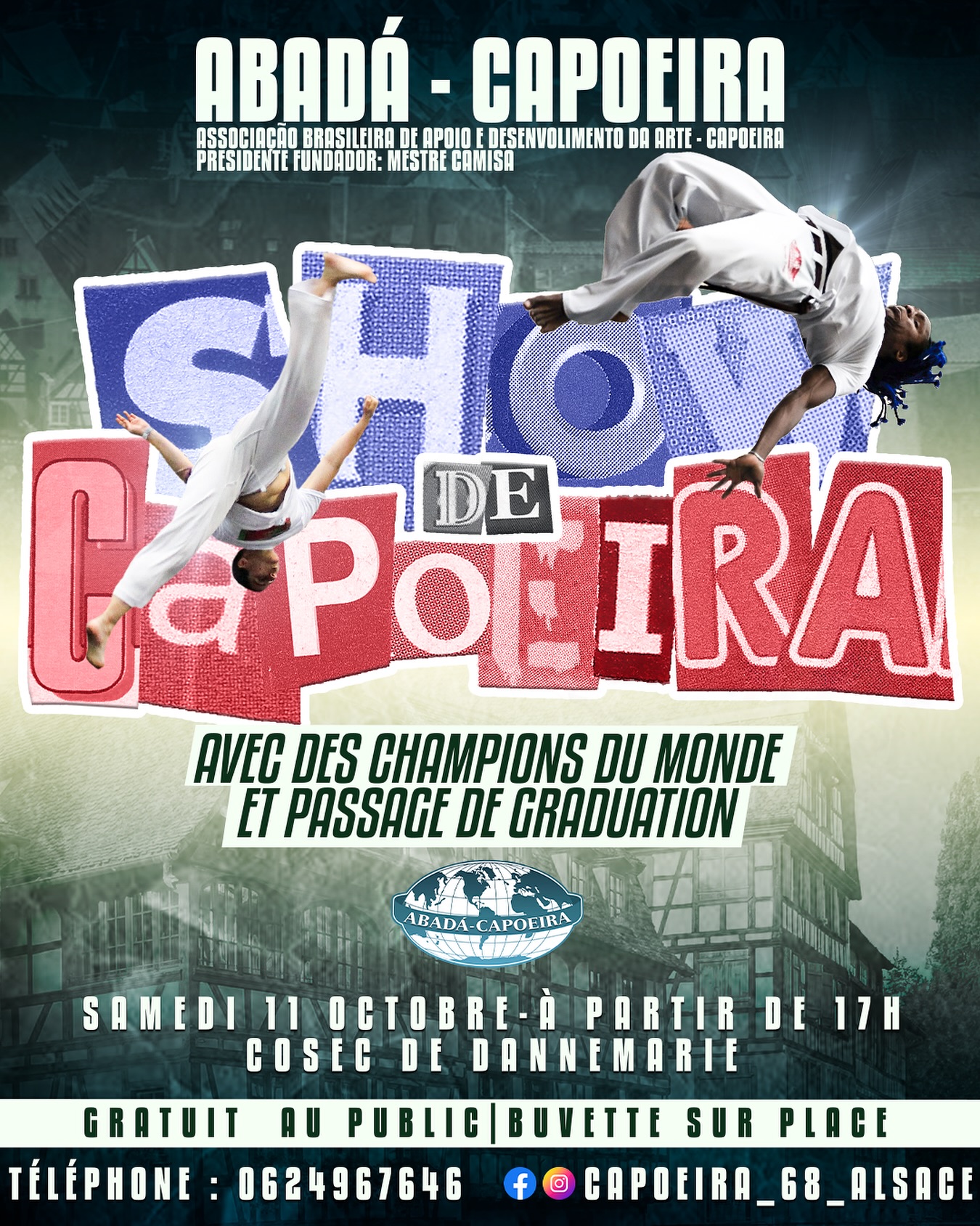 Des champions du monde et des capoeiristes venus du Brésil et de tous les continents se réunissent pour un spectacle inoubliable.