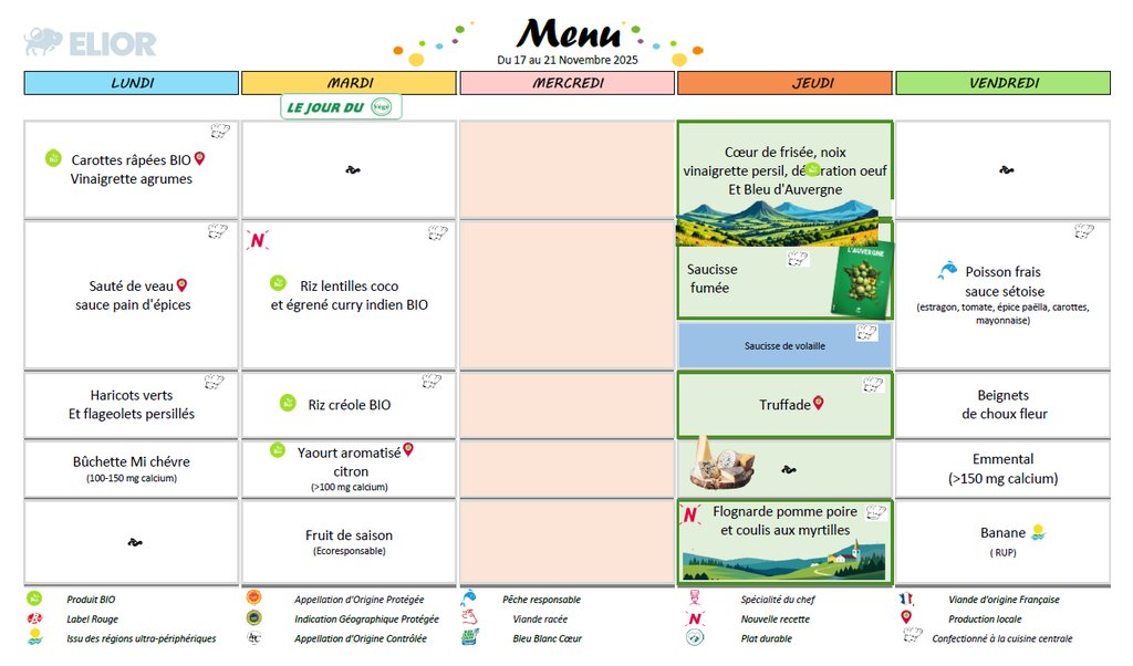 MENU CANTINE DU 17 AU 21 NOVEMBRE