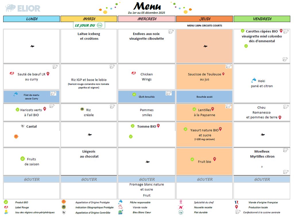 🥗 Découvrez les repas prévus pour cette première semaine de décembre à la cantine scolaire !