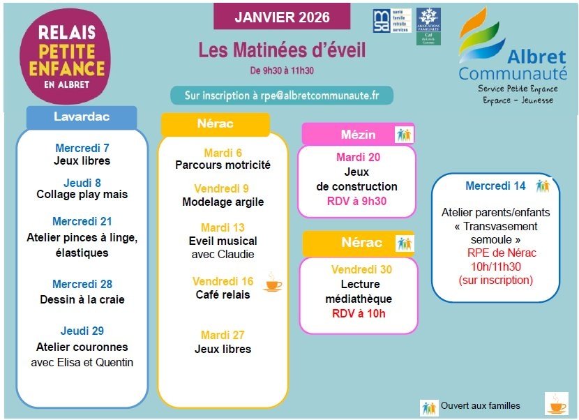 Le Relais Petite Enfance en Albret vous communique le programme du mois de Janvier 2026.