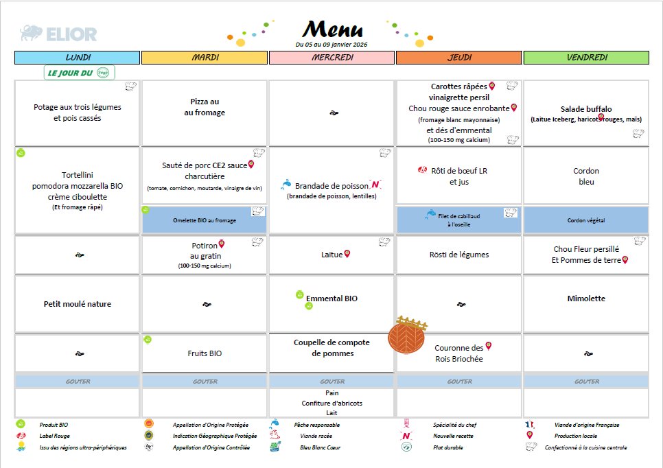 🥗 Découvrez les repas prévus pour cette première semaine de janvier à la cantine scolaire !